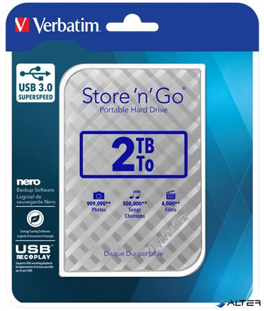 2,5' HDD (merevlemez), 2TB, USB 3.0, VERBATIM 'Store n Go', ezüst
