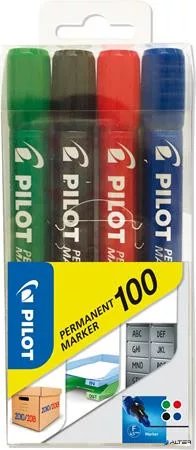 Alkoholos marker, 1 mm, kúpos, PILOT "Permanent Marker 100", 4 szín