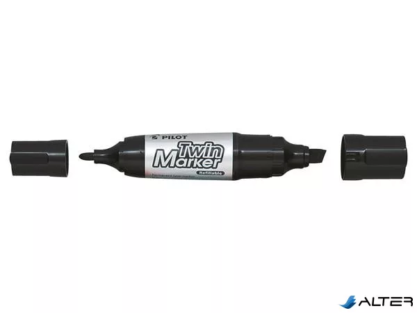 Alkoholos marker, 4/4,8-7 mm, kétvégű, PILOT 'Twin Jumbo', fekete