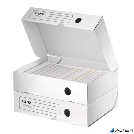 Archiválódoboz, A4, 80 mm, felfelé nyíló, LEITZ "Infinity", fehér