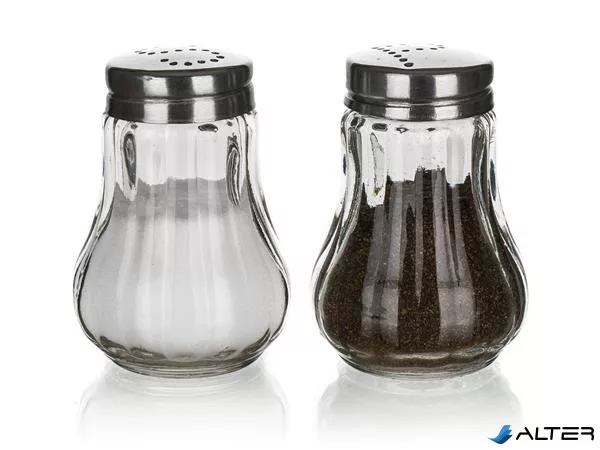 Asztali só-, borsszóró készlet, üveg és inox, 2 db, 7 cm "Mono"
