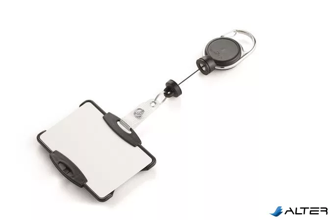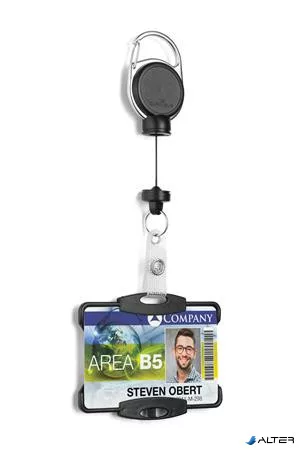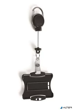 Azonosítókártya-tartó, kihúzható, karabineres, DURABLE "Extra strong", kártyatartóval, fekete