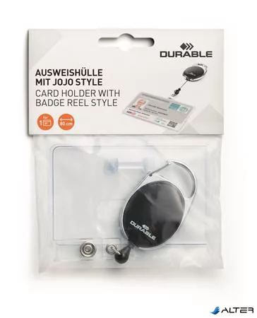 Azonosítókártya-tartó, kihúzható, karabineres, DURABLE "Style", fekete