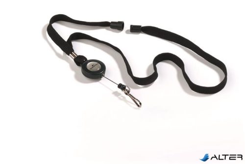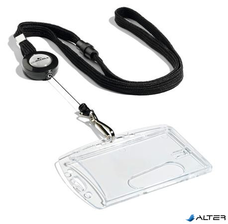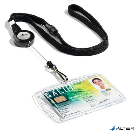 Azonosítókártya-tartó, kihúzható, karabineres, fekete nyakba akasztóval, DURABLE