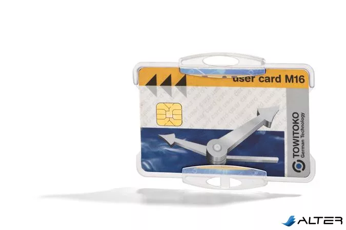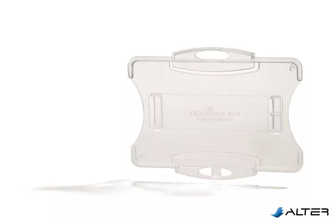 Praktikus azonosítókártya-tartó, többféle rögzítési lehetőséggel.