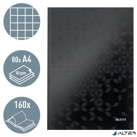 Beíró, A4, kockás, 80 lap, keményfedeles, LEITZ "Wow", fekete