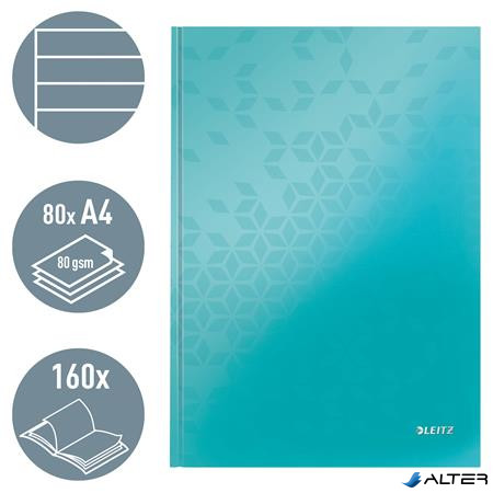Beíró, A4, vonalas, 80 lap, keményfedeles, LEITZ 'Wow', jégkék