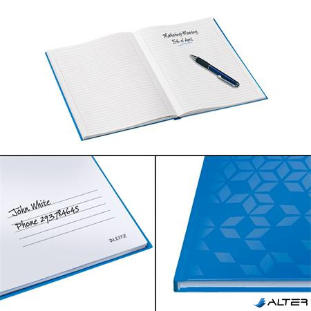 Beíró, A4, vonalas, 80 lap, keményfedeles, LEITZ "Wow", kék