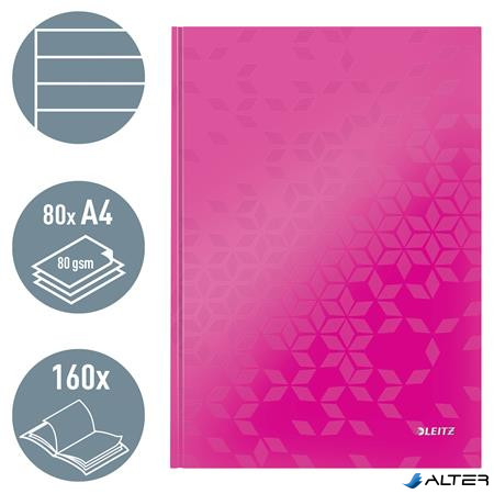 Beíró, A4, vonalas, 80 lap, keményfedeles, LEITZ 'Wow', rózsaszín