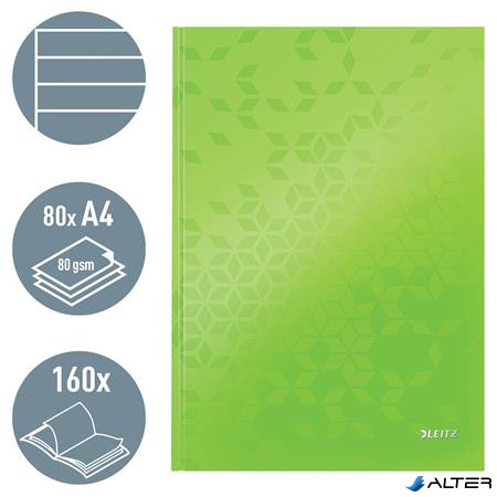 Beíró, A4, vonalas, 80 lap, keményfedeles, LEITZ 'Wow', zöld