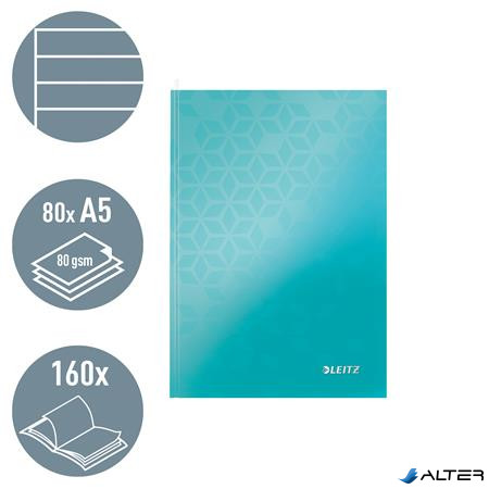Beíró, A5, vonalas, 80 lap, keményfedeles, LEITZ "Wow", jégkék