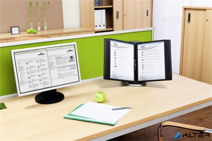 Bemutatótábla tartó, asztali, 10 db bemutatótáblával, DURABLE "SHERPA®", fekete