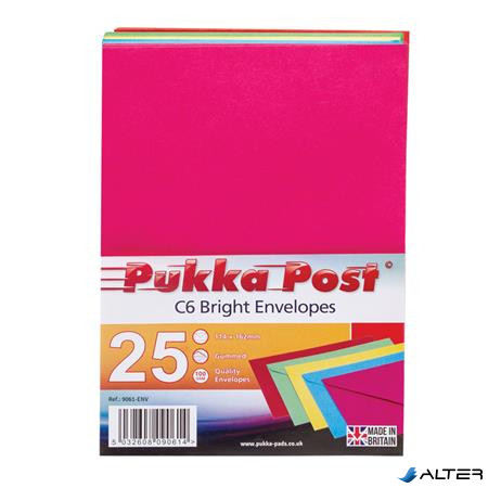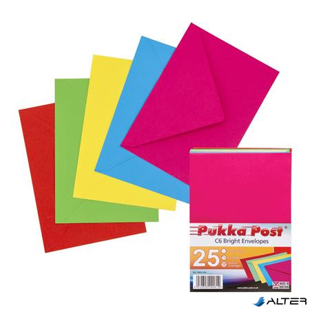 Boríték, C6, enyvezett, PUKKA PAD "Bright", vegyes színek