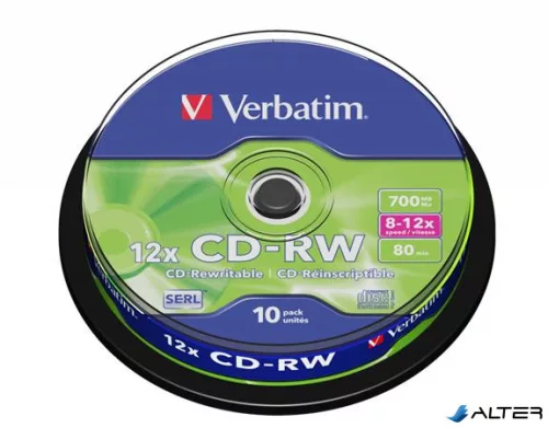 CD-RW lemez, újraírható, SERL, 700MB, 8-10x, 10 db, hengeren VERBATIM