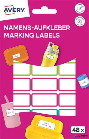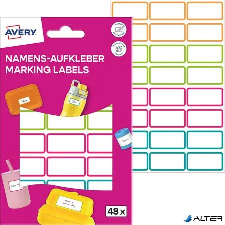 Címke, műanyag, iskolai, 31x15 mm, kézzel írható, AVERY ZWECKFORM, színes, 48 címke/csomag