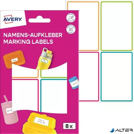 Címke, műanyag, iskolai, 68x46 mm, kézzel írható, AVERY ZWECKFORM, színes 8 címke/csomag