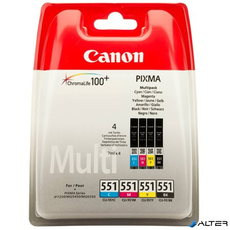 CLI-551KIT Tintapatron multipack Pixma iP7250, MG5450 nyomtatókhoz, CANON, b+c+m+y, 4*7ml