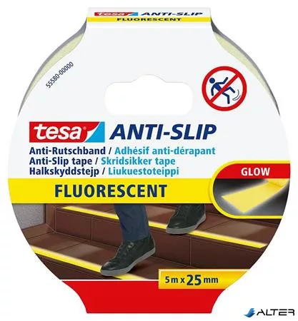 Csúszásgátló szalag, 25 mm x 5 m, TESA "Anti-Slip", fluoreszkáló
