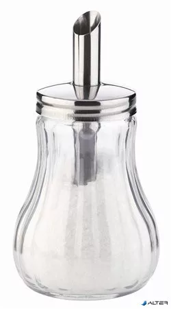 Üveg cukorszóró, rozsdamentes fém adagoló fejjel.
