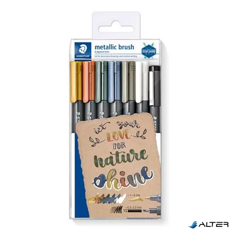 Dekormarker, 1-6 mm, kúpos, ajándék tusfilccel, STAEDTLER '8321', 6 különböző metál szín