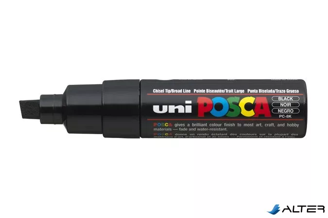 Dekormarker, 8 mm, vágott, UNI "Posca PC-8K", fekete