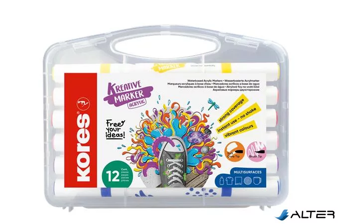 Dekormarker készlet, akril, 1-2 mm, kétvégű, KORES ' K-Kreative', 12 különböző szín