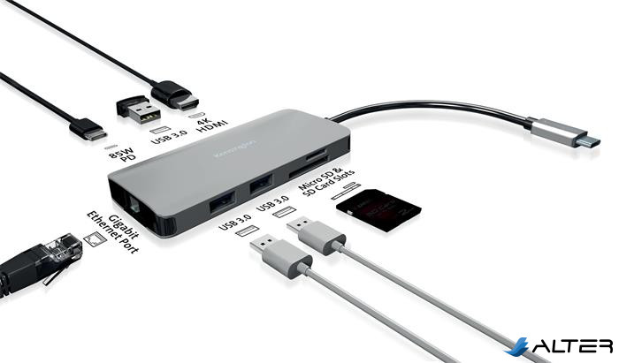 Dokkoló, 8 port, USB-C, KENSINGTON 'UH1400P'