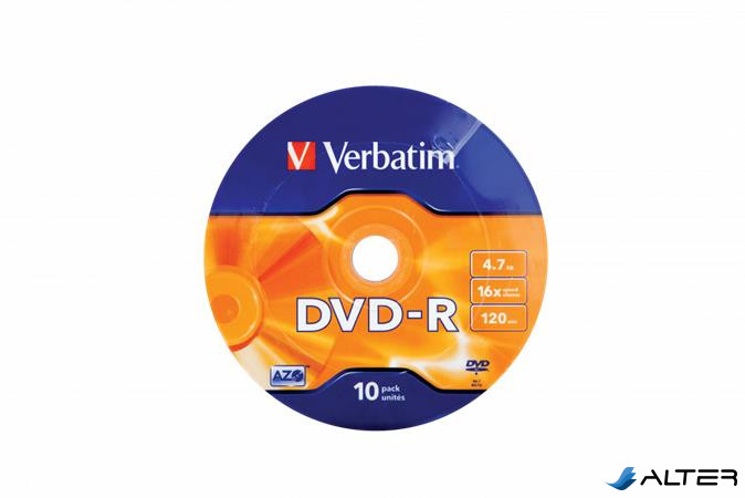 DVD-R lemez, 4,7GB, 16x, 10 db, zsugor csomagolás, VERBATIM