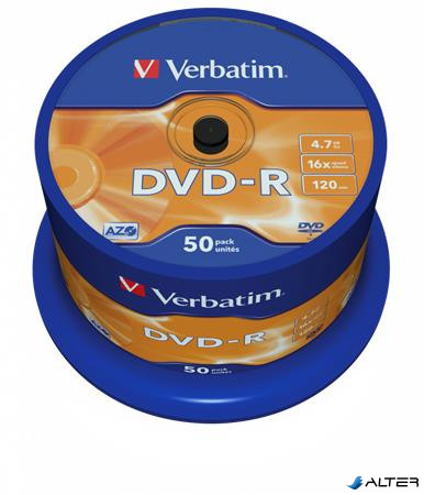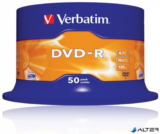 DVD-R lemez, AZO, 4,7GB, 16x, 50 db, hengeren, VERBATIM