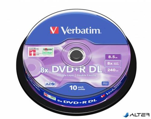 DVD+R lemez, kétrétegű, 8,5GB, 8x, 10 db, hengeren, VERBATIM 'Double Layer'