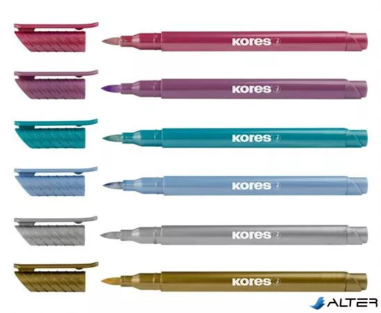 Ecsetirón készlet, KORES 'Metallic Style', 6 metál szín