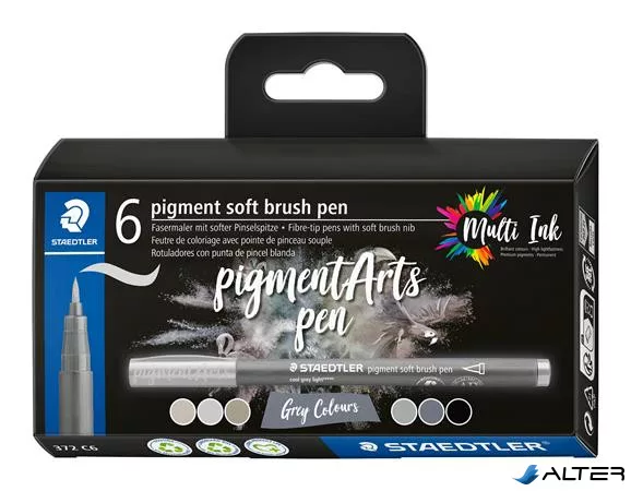 Ecsetirón készlet, STAEDTLER 'Pigment 372', 6 különböző fekete és szürke árnyalat