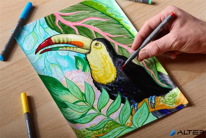 Ecsetirón készlet, STAEDTLER "Pigment brush 371", 12 különböző pasztell szín