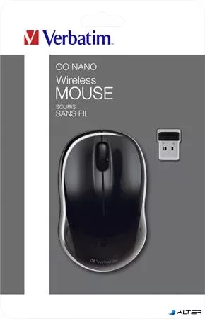 Egér, vezeték nélküli, optikai, közepes méret, USB, VERBATIM 'Go', fekete