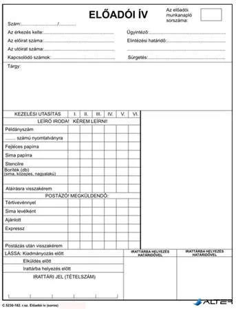 Nyomtatvány, előadói ív, szabadlap, A4, négyoldalas, "C.5230-182"