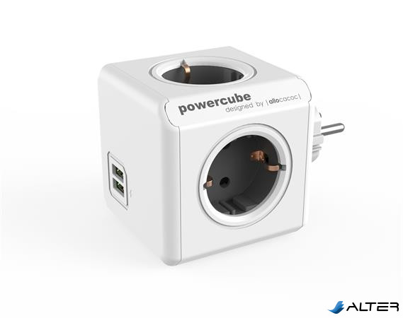 Elosztó, 4 aljzat, 2 USB csatlakozó, ALLOCACOC 'PowerCube Original USB DE', fehér-szürke