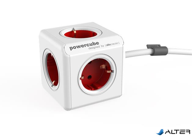 Elosztó, 5 aljzat, 1 rögzítő elem, 1,5 m kábelhosszúság, ALLOCACOC "PowerCube Extended DE", fehér-piros