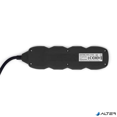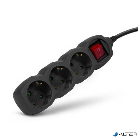 Elosztósor, 3 aljzat, 1,5 m, kapcsolóval, ENTAC, fekete