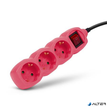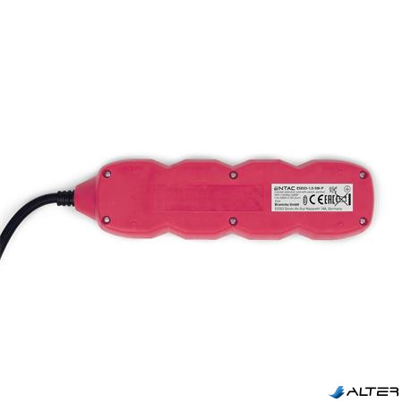 Elosztósor, 3 aljzat, 1,5 m, kapcsolóval, ENTAC, rózsaszín