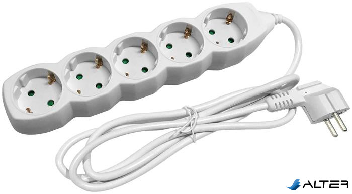 Elosztósor, 3 aljzat, 5 m, ENTAC, fehér