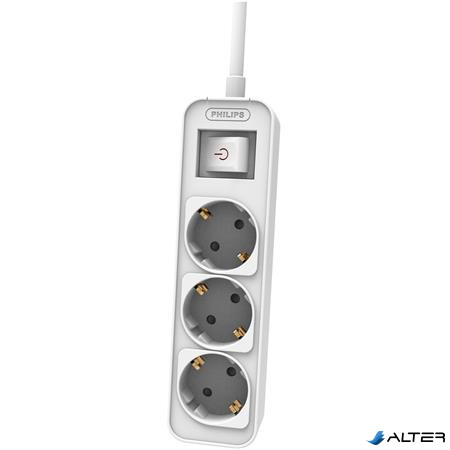 Elosztósor, 3 csatlakozóaljzat, 1,5 m kábel, PHILIPS, fehér
