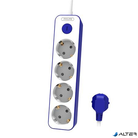 Elosztósor, 4 csatlakozóaljzat, 1,5 m kábel, PHILIPS, fehér-kék