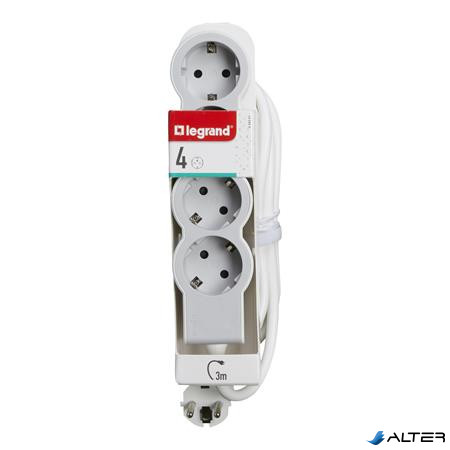 Elosztósor, 4 csatlakozóaljzat, 3 m kábelhosszúság, LEGRAND 'Standard', fehér-szürke