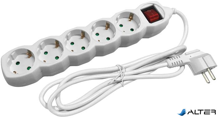Elosztósor, 5 aljzat, 3 m, kapcsolóval, ENTAC, fehér