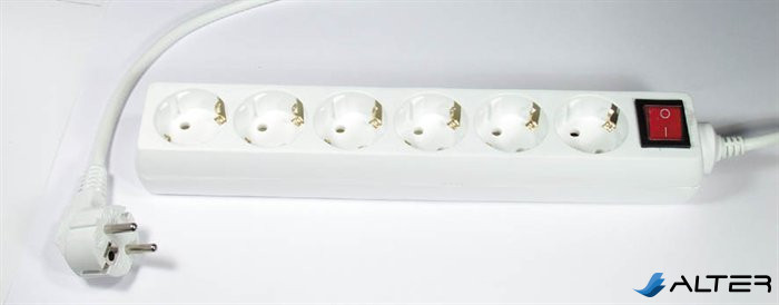 Elosztósor, 6 csatlakozóaljzat, 5 m kábelhosszúság, kapcsolóval