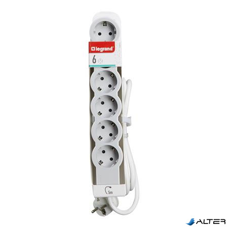 Elosztósor, 6 csatlakozóaljzat, 5 m kábelhosszúság, LEGRAND 'Standard', fehér-szürke