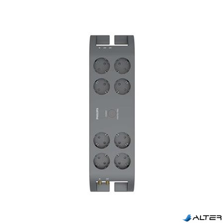 Elosztósor, 8 csatlakozóaljzat, túlfeszültség-védelemmel, 2 m kábel, PHILIPS, sötétszürke