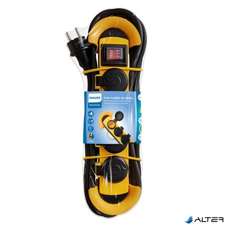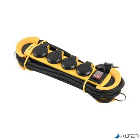 Elosztósor, kültéri, 4 csatlakozóaljzat, 5 m kábel, PHILIPS, fekete-sárga