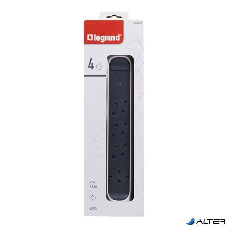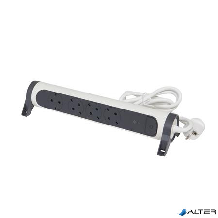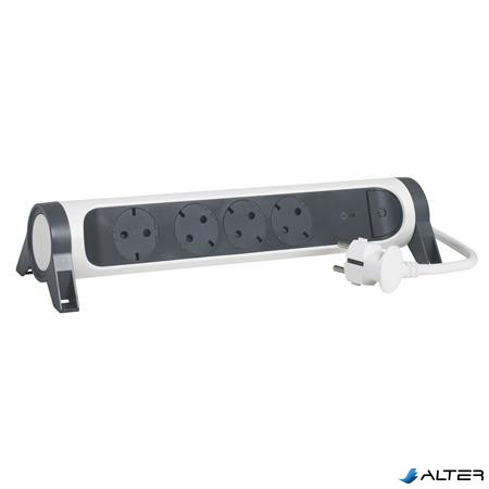 Elosztósor, túlfeszültség levezetővel, 4 csatlakozóaljzat, 1,5 m, LEGRAND, fehér-sötétszürke