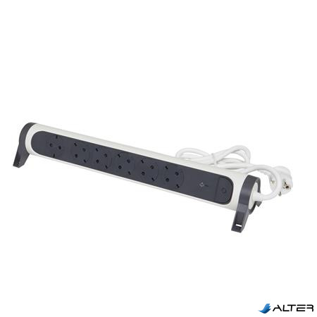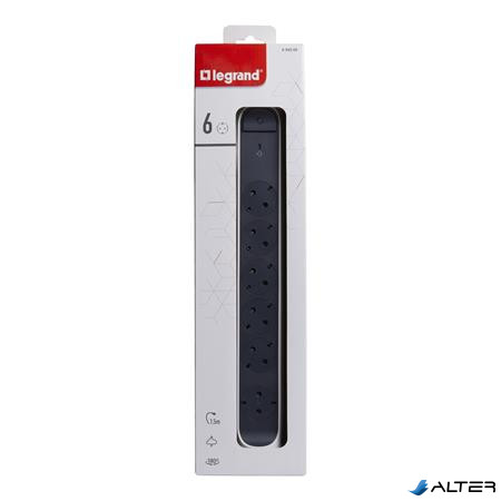 Elosztósor, túlfeszültség levezetővel, 6 csatlakozóaljzat, 1,5 m, LEGRAND 'Premium', fehér-fekete